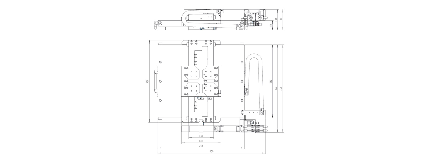 Air-bearing XY stage with ultra-thin profile dimensions for high-accuracy, high-stiffness horizontal linear motion.