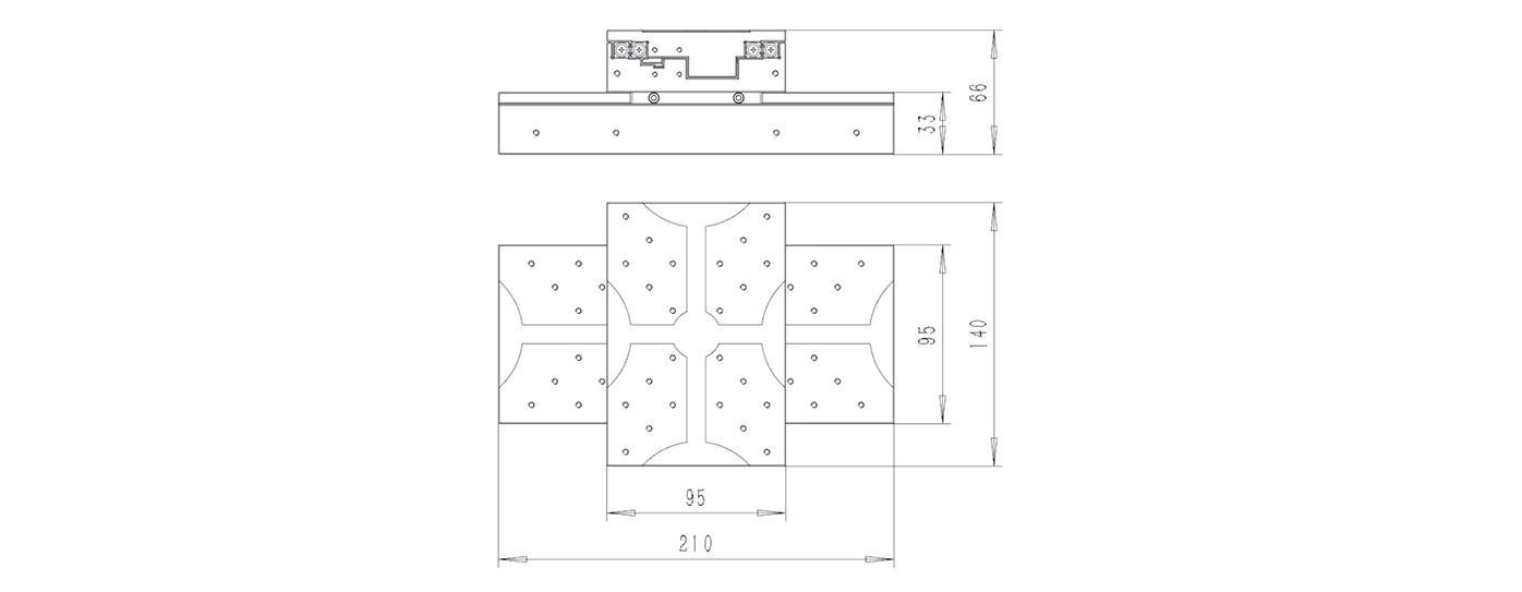 Miniature linear stage with ultra-thin profile dimensions for single-axis and multi-axis use cases, realizing high-precision and high-stiffness horizontal linear motion.