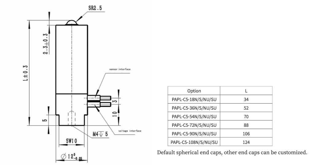 C5 series Preloaded Piezo Actuator, effective travel 54μm, open-loop. |