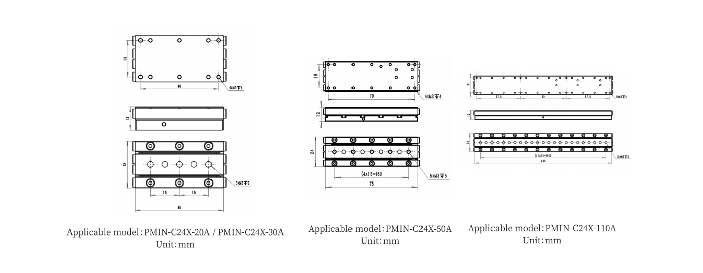 *PMIN-C24X-50A models default to a stainless steel base. For lightweight requirements, an aluminum alloy version (-AL) is available.