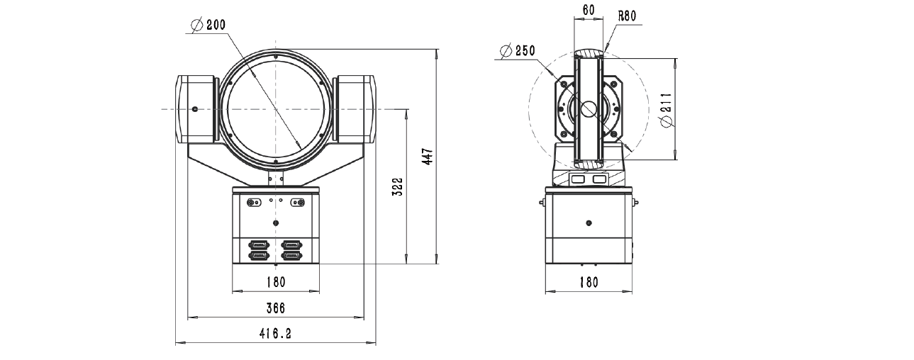 The stage adopts large-size aperture and orthogonality design. High-precision, high-stiffness 360-degree infinition rotation for pitching and vertical rotation.