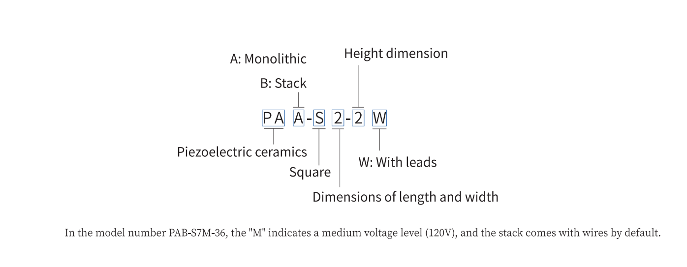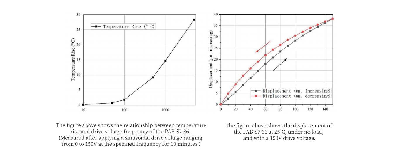 *Displacement test: drive voltage range 0 to 150V, another PAB - S7M - 36 drive voltage 0~120V, tolerance ±15%